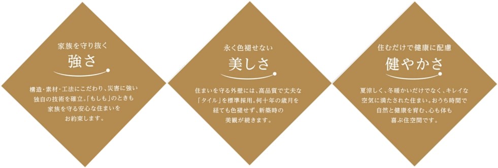 住いは家族がずっと暮らしていく大切な場所、だからこそ家にいる時間が好きになる、安心で快適な住環境を実現するために、クレバリーホームの3つのこだわりがご家族を守り、長く愛せる快適な住まいと幸せな暮らしを叶えます。