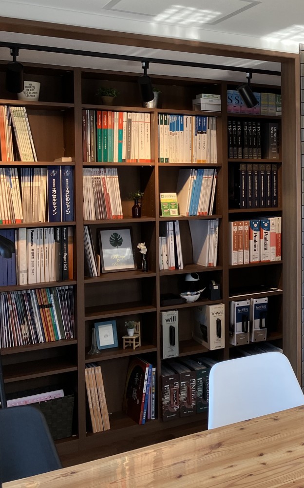 造り付けの本棚なので、地震等で倒れる心配もなく安心です。