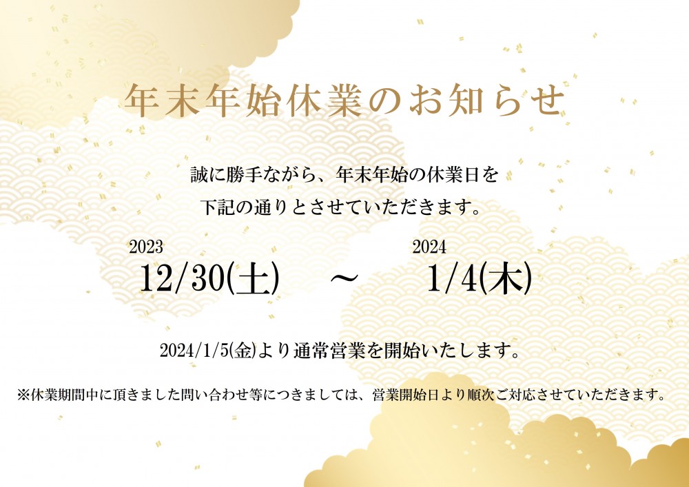 年末年始休業のお知らせ