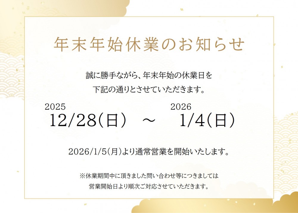 休業日:2025年12月28日(日)~2026年1月4日(日)